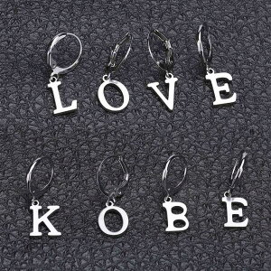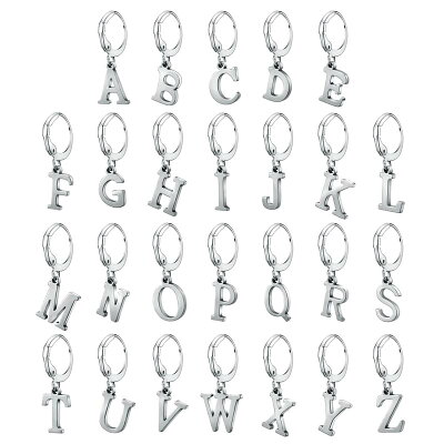 イニシャルチャームレバーバックフープピアス(W) 1個販売 揺れる ネームプレート アルファベット 英語 メッセージ サージカルステンレス316L メンズ レディース ステンレスピアス 軟骨 耳 20G 20ゲージ リングピアス ヘリックス 軟骨 男の人 女の人 ペアルック プレゼント