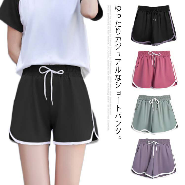 ショートパンツ レディース 短パン スウェットパンツ ショート丈 ワイドパンツ ゆったり ゆるパンツ ウエストゴム 切り替えパンツ ボトムス 薄手 スポーツパンツ 夏物 夏新作