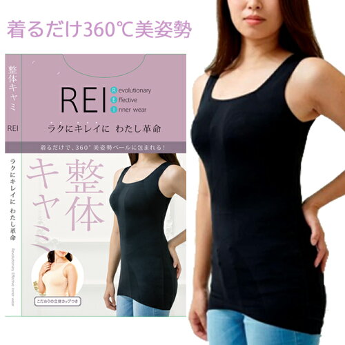 店舗トップへ [ 体型カバー 補正下着 ]はコチラから! 商品名 整体キャミソール REI カラー ブラック / ベージュ 材質 ナイロン85% ポリウレタン15% 適応サイズ M:バスト79~87cm、ヒップ87~95cm L:バスト86~94cm、ヒップ92~100cm LL:バスト93~101cm、ヒップ97~105cm 3L:バスト100~108、ヒップ102~110cm 商品詳細 着るだけで360°美姿勢に包まれる! 整体キャミREIの7つの特徴 ・きつすぎない引き締め感 ・自然と胸が張れるソフトタッチネット ・立体カップできれいなバストを演出 ・ぽっこりお腹を撃退!XI(クロスアイ)ベルトの引き締め ・ワキ肉撃退ネットでワキ肉OFF☆